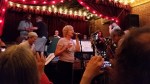 Sally Timms gives marching orders to the assembled Mekons backup choir, Jalopy Theater, Brooklyn NY, July 23 2015