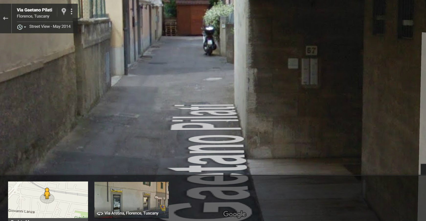 I am walking home from a glass shop with my loathed (and a touch psychotic) apartment-mate, G (whom I was subletting from). She’d harangued me and my roommate H for weeks about how we needed to make sure we only ever had one window open at a time in the apartment, because a cross-breeze would make one of the glass doors or windows slam and shatter the glass. Who did this happen to, of course? G herself. The bathroom window – the one that looked out on the distant Duomo – crashed shut one day while she was alone in the house. It was awfully big of me to help her go to the glass shop, retrieve the pane, and WALK BACK HOME with it. There was not much padding, as I recall. It was pretty much just a pane of glass stretched between us, and the most efficient way to carry it turned out to be stretched across the street, as we walked IN THE STREET. Predictably, someone heading along on a Vespa almost rode through it. I do not know how we made it back with the glass intact, but we did.