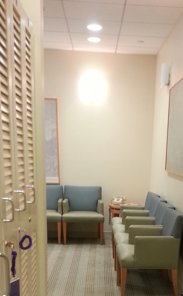 I think what’s so riveting to me about this photo is the absence of people. It was 5 p.m., not a very popular time for treatment, but they’d had to schedule mine in a hurry, so I went with what would work. That would have thrown our family schedule into disarray, since I would have normally been home with the kids at that hour.